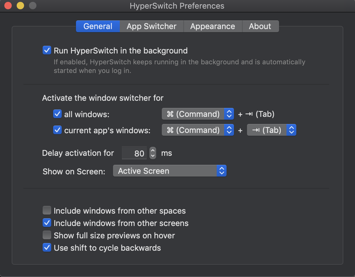 hyperswitch를 설치하고 다음과 같이 설정하면